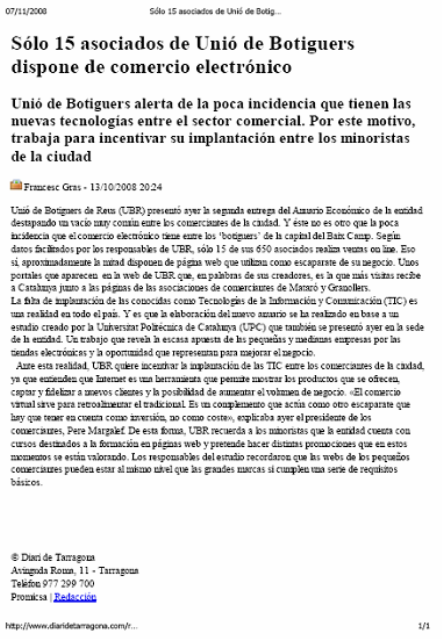 "Diari de Tarragona". Presentación TecnoPYME.cat en Reus. (13/10/2008)