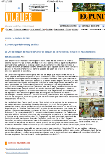 "Diari el Punt". Presentación TecnoPYME.cat en Reus. (14/10/2008)